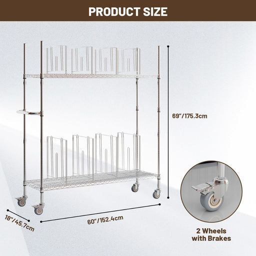 View full detailsDual Level Steel Carton Stand w/ 8 Dividers & Casters, 60"L x 18"W x 69"H, Chrome