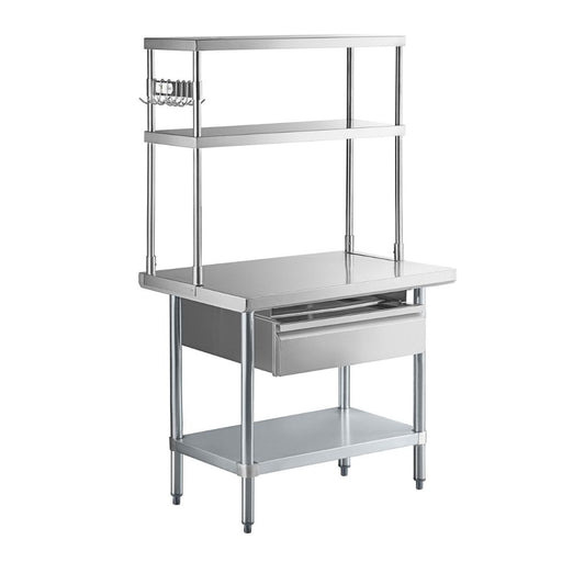 View full details36" x 24" Stainless Steel Prep Table w/ Overshelves, Drawer & Undershelf
