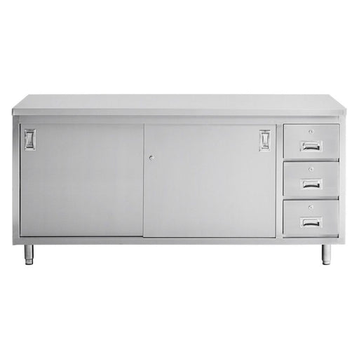 View full details60" x 24" Stainless Steel Prep Table w/ Lockable Drawers and Storage Cabinet