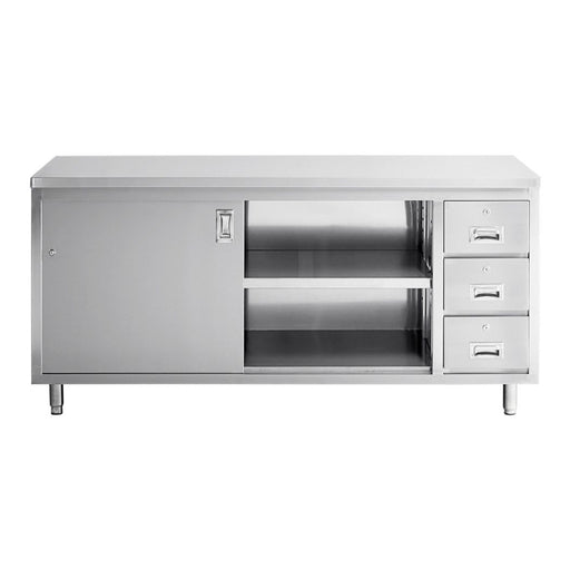 View full details72" x 30" Stainless Steel Prep Table w/ Lockable Drawers and Storage Cabinet
