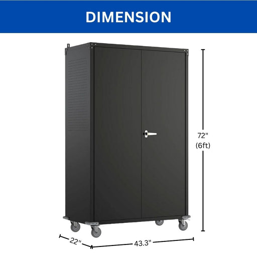 View full detailsExtra-Large Garage Storage Cabinet w/ Pegboards & Locking Wheels, 43.3"W x 22"D x 72"H
