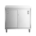 Create a cleaner, more organized, and more efficient kitchen with this 36" x 24" stainless steel prep table, available in four versatile configurations to suit any workflow. Choose the enclosure style (open front or lockable sliding doors) and benchtop style (flat top or 6" backsplash) that best fits your operation: