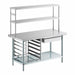 Upgrade your kitchen efficiency with this heavy-duty 60" x 30" stainless steel work table, engineered to provide maximum workspace and multi-level storage in busy commercial environments. With integrated overshelves, drawers, and a bun pan rack—including 6 included bun pans—this station is built to help you prep, organize, and operate seamlessly.