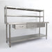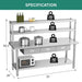 Featuring 2 over shelves and 1 under shelf, this stainless steel workbench provides ample storage for appliances like microwaves, meat grinders, and other equipment.